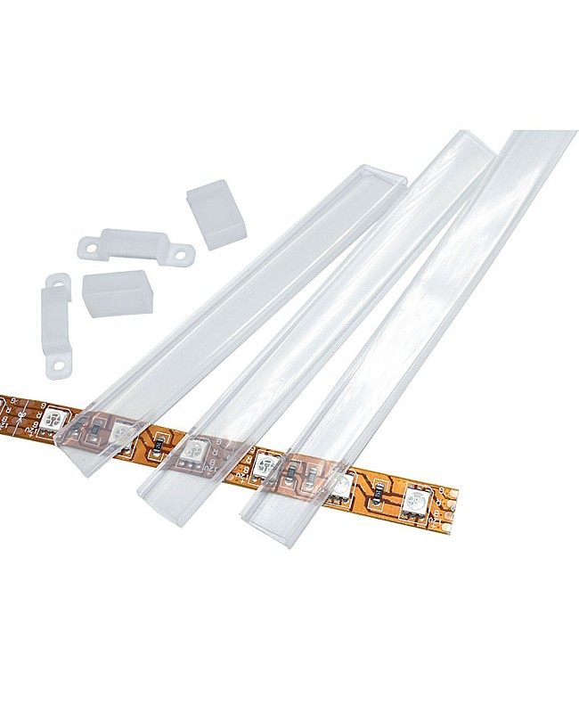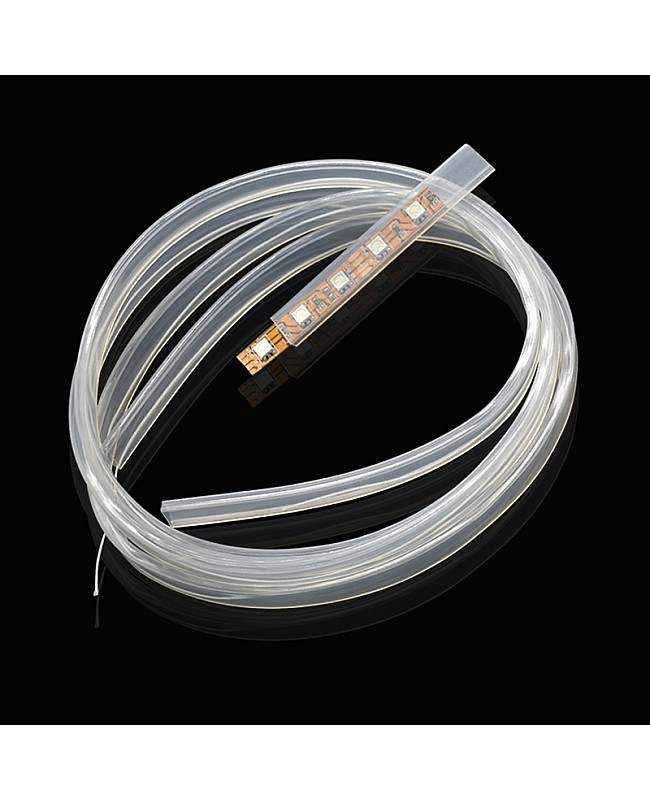 The silicone tubes are designed for COB or SMD LED strips. They wrap the LED strips to make them dustproof and waterproof, allowing you to install them in both wet environments and outdoor locations. The slim silicone channels are made of quality silicone material, making them flexible and bendable. There are three sizes of products in stock, suitable for 8mm, 10mm, and 12mm width LED strips. There is a rope inside the silicone tubes. You can tie the rope to your LED strips, insert one end, and pull the rope from the other end to let the LED strips slide through. Then seal the end caps with silicone glue for waterproofing. We have three colors of products in stock: transparent, milky white, and black. You can pick them for your projects. End caps and silicone clips are included.