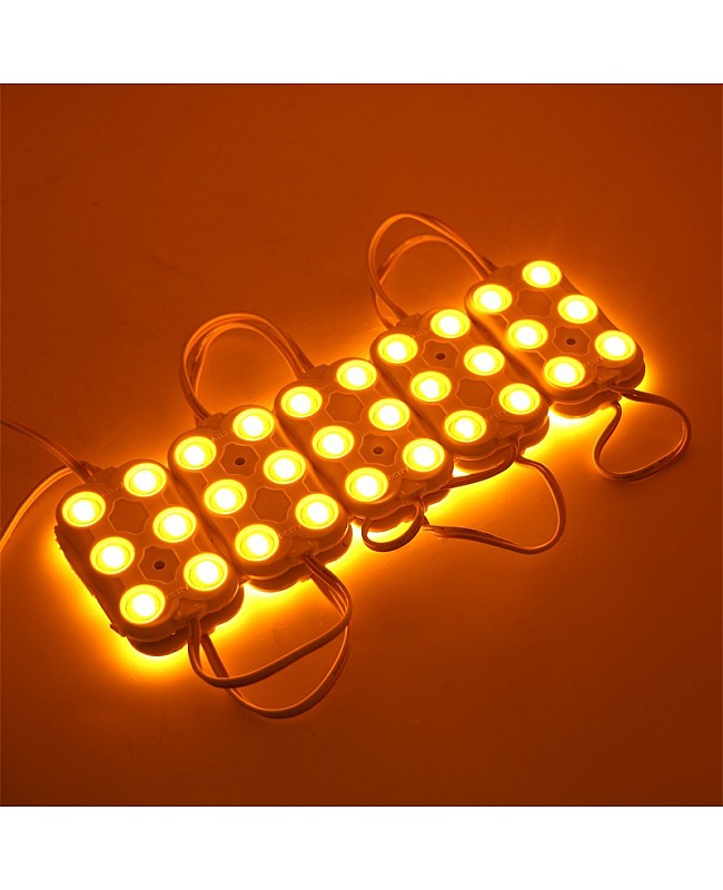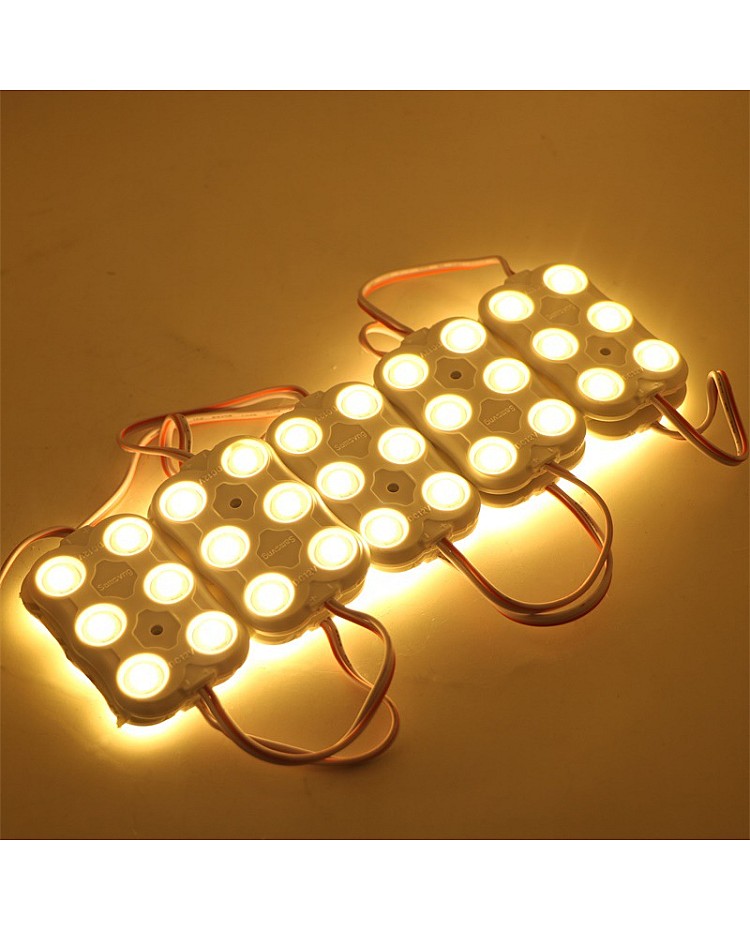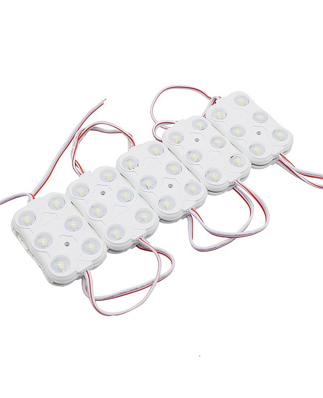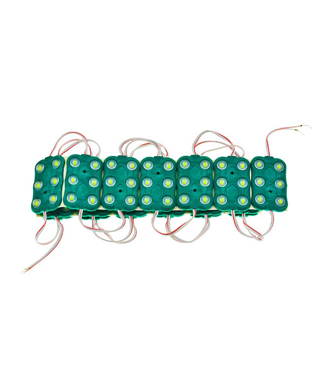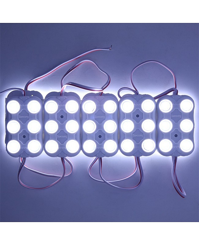 The SMD modules with optical lens, which uses 6PCS high-quality and super bright 5730 SMD LEDs as the light source, the LEDs mounted on the aluminum board and sealed in the PVC shell, the PVC shell made of the molding injection process, looks fashionable and high-temperature resistance and corrosion resistance, the IP rating is IP65 waterproof, can be used for the indoor and outdoor projects, the surface on the LEDs with optical lens, which for the wide beam angle. 20PCS per string, cuttable and reconnectable, you can cut to any quantity and reconnect for your lighting project. The back has double-sided adhesive tape, so removing the protective paper from the tape and sticking it where you want to install it is easy. The center with a screw hole, you can use the screws to fix them on the surface of the lighting projects. Various emitting colors are available: cool white, warm white, red, blue, green, yellow, and pink, working in DC12V, easy to connect to the 12VDC LED power supply to light up or connect to the LED lighting dimmer to adjust the brightness freely. You can use them as the backlight for the signs, billboards, channel letters, holiday decorations, reading lights for the cars, trucks, vans, etc.