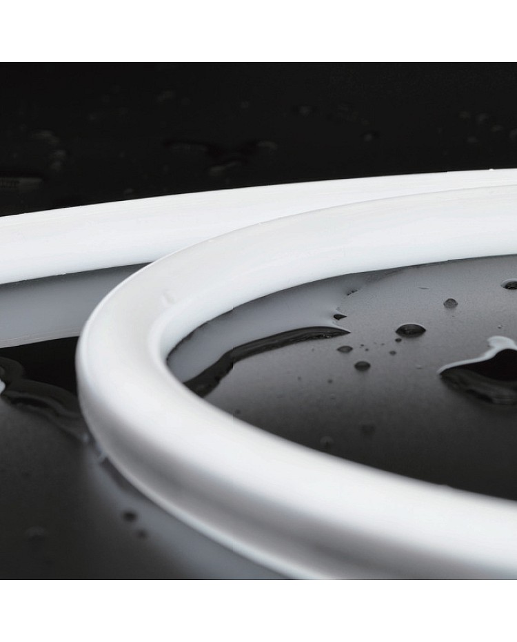 The round LED neon light strips are made of pure silicone material for excellent resistance to oxidation, UV, salt water, and high temperature. The IP rating is IP67, and you can use them in a wet, damp, or water location for outdoor applications. You can choose the various colors for different scenes, and the uniform luminescence and dot-free will give you the most excellent performance. The neon strip lights work in DC24V and use the 2835 SMD LEDs as the light source, with a 360 ° beam angle, 5 meters per reel, you can cut and reconnect them for your project. You can connect to a dimmer or RGB LED controller to adjust the brightness or change the dynamic mode.