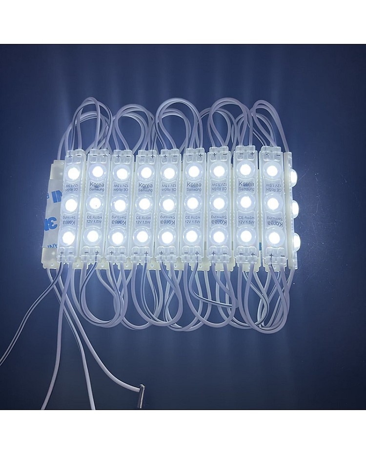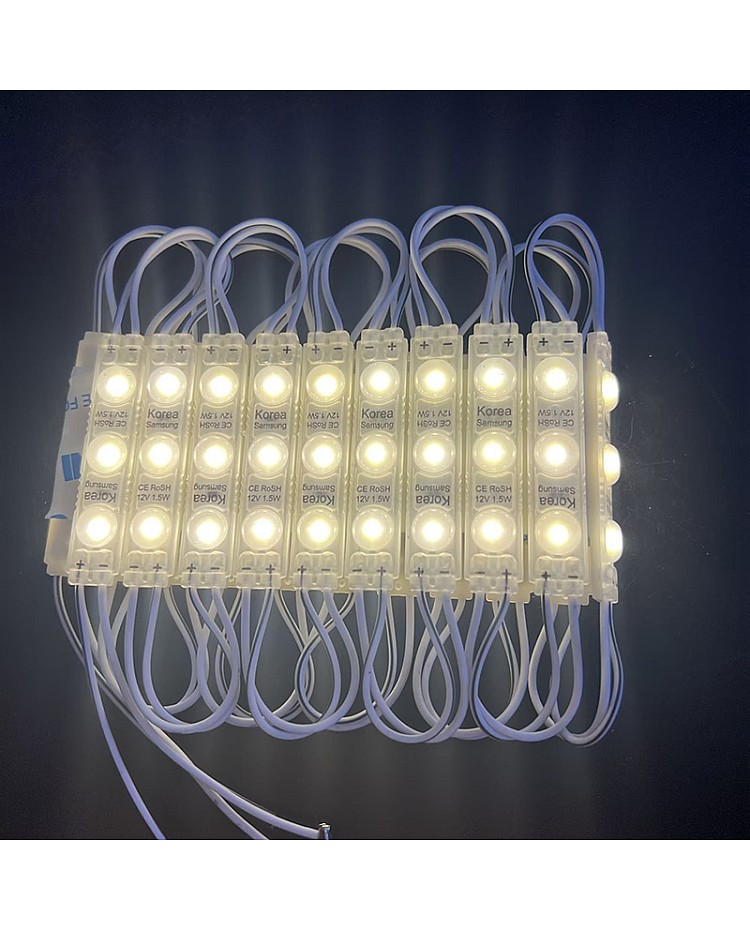 The waterproof white LED modules with lenses are perfectly designed for light boxes and other applications. They come in various colors and feature a high-quality lens that enhances light output and reduces glare. The waterproof module lights use super bright 2835 SMD LEDs as the light source, and the SMD LEDs are mounted on an aluminum board for better heat dissipation, high brightness, energy saving, and long-lasting. The waterproof level reaches IP65; you can use them indoors and outdoors. They are easy to install and built to last. The back side has double-sided adhesive tape, which makes it easy to stick to where you want to install it. Whether you need a bright white light or other single colors for a lightbox or a softer, more diffused light for a sign or advertisement, these LED modules will surely meet your needs.