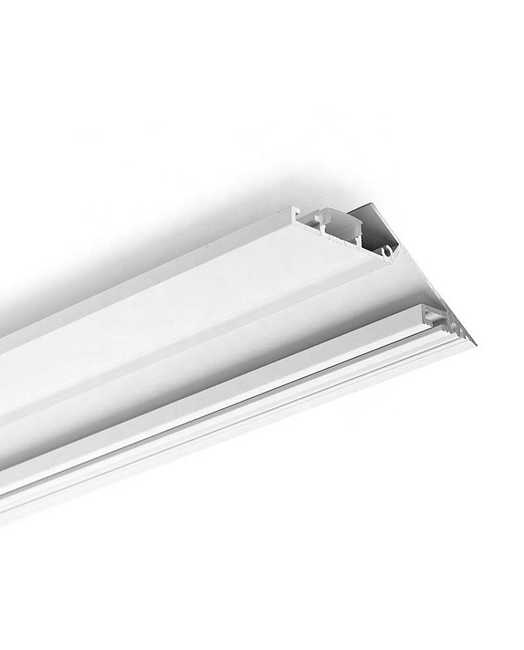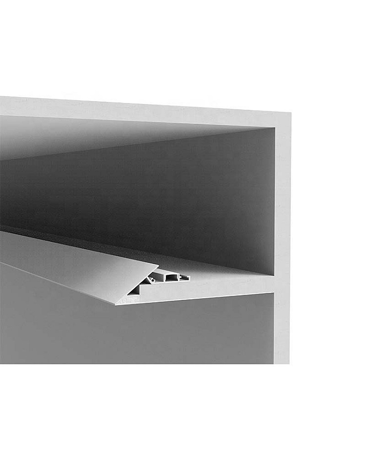 The knife-edge plaster-in aluminium profiles can be seamlessly blended into 1/2" plasterboard on dropped ceilings for a clean and minimalist look. They will accommodate and hide the LED strips, directing the light upwards for a soft, glare-free glow. Ideal for modern cove lighting that enhances architectural depth and ambiance. The knife edge LED profiles are made of 6063-T5 aluminum alloy material with a white powder-coated finish, providing anti-oxidation resistance, durability, and long-lasting protection, which helps ensure the LED strips are secure and protected from damage. The standard lengths are 1 m and 2 m, and they can be easily cut to any size. Only one type of diffuser is available: PC diffused covers, made of brand-stable material and anti-yellowing. It helps to diffuse the light, providing a soft, even glow. The diffuser features a clip-in design, making it easy to install and maintain. The inner width is 13.3 mm, allowing for a maximum strip light width of 13 mm. We recommend using high-density COB strip lights as the light source, as they produce a uniform light without visible light dots. The aluminum profiles can serve as heat sinks, improving heat dissipation and extending the lifespan of the LED lights. Three types of LED channel joiners are sold separately: 90°, 90° vertical, and 180° for angled or straight connections. The end caps are included.