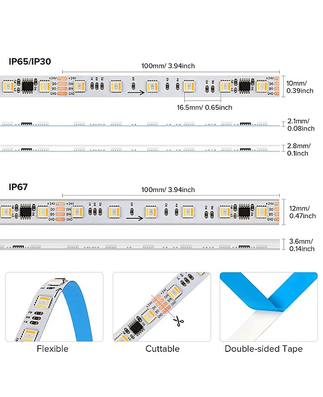 - Type: 5 In 1 RGB+CCT addressable LED strips